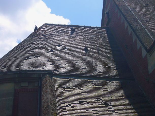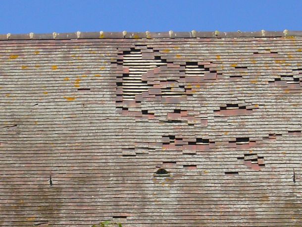 Toiture détériorée : J'ai également remplacé 4000 tuiles endommagées pour assurer l'étanchéité complète de la toiture.
