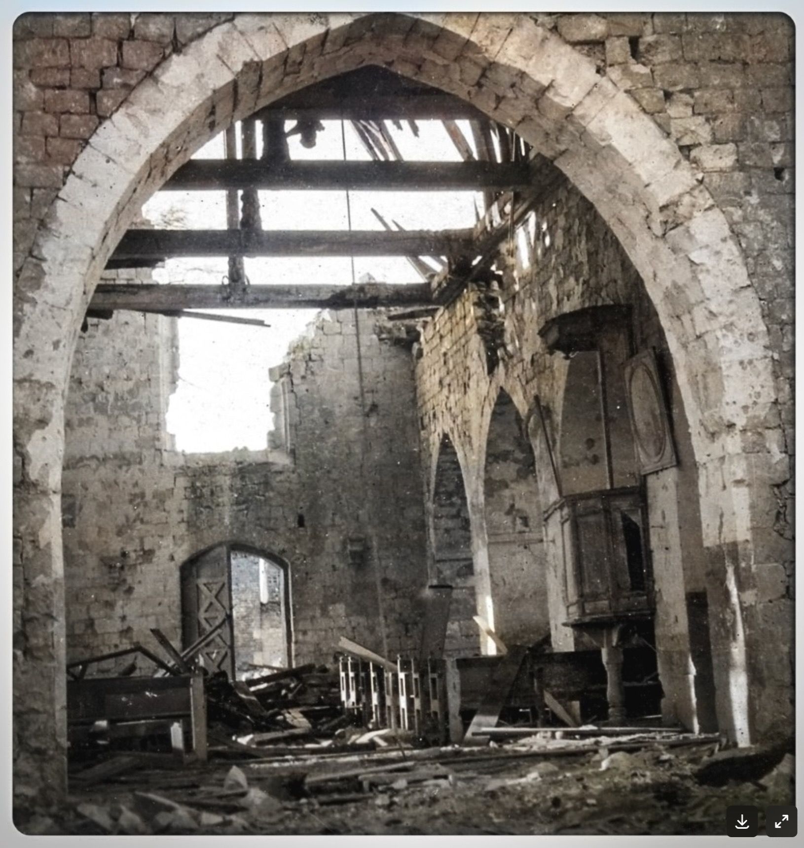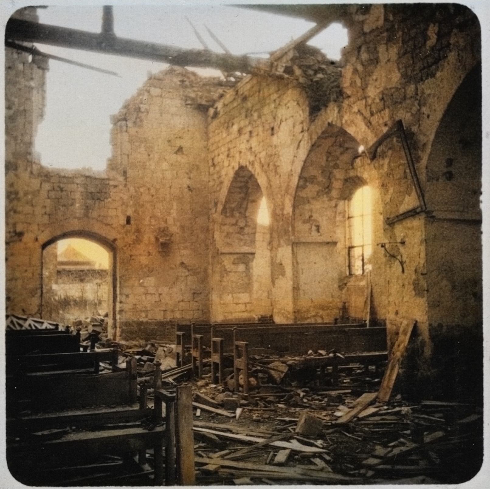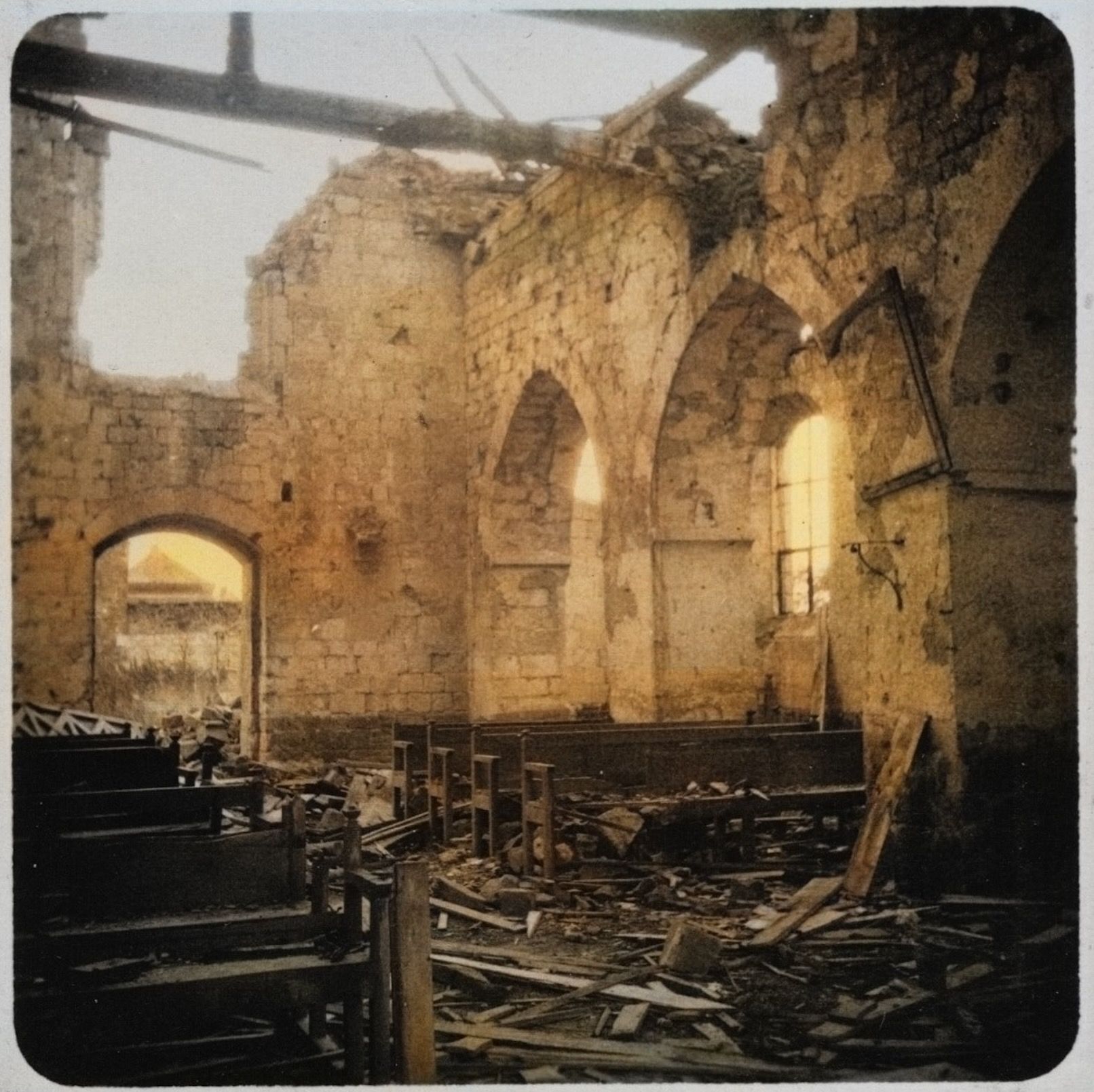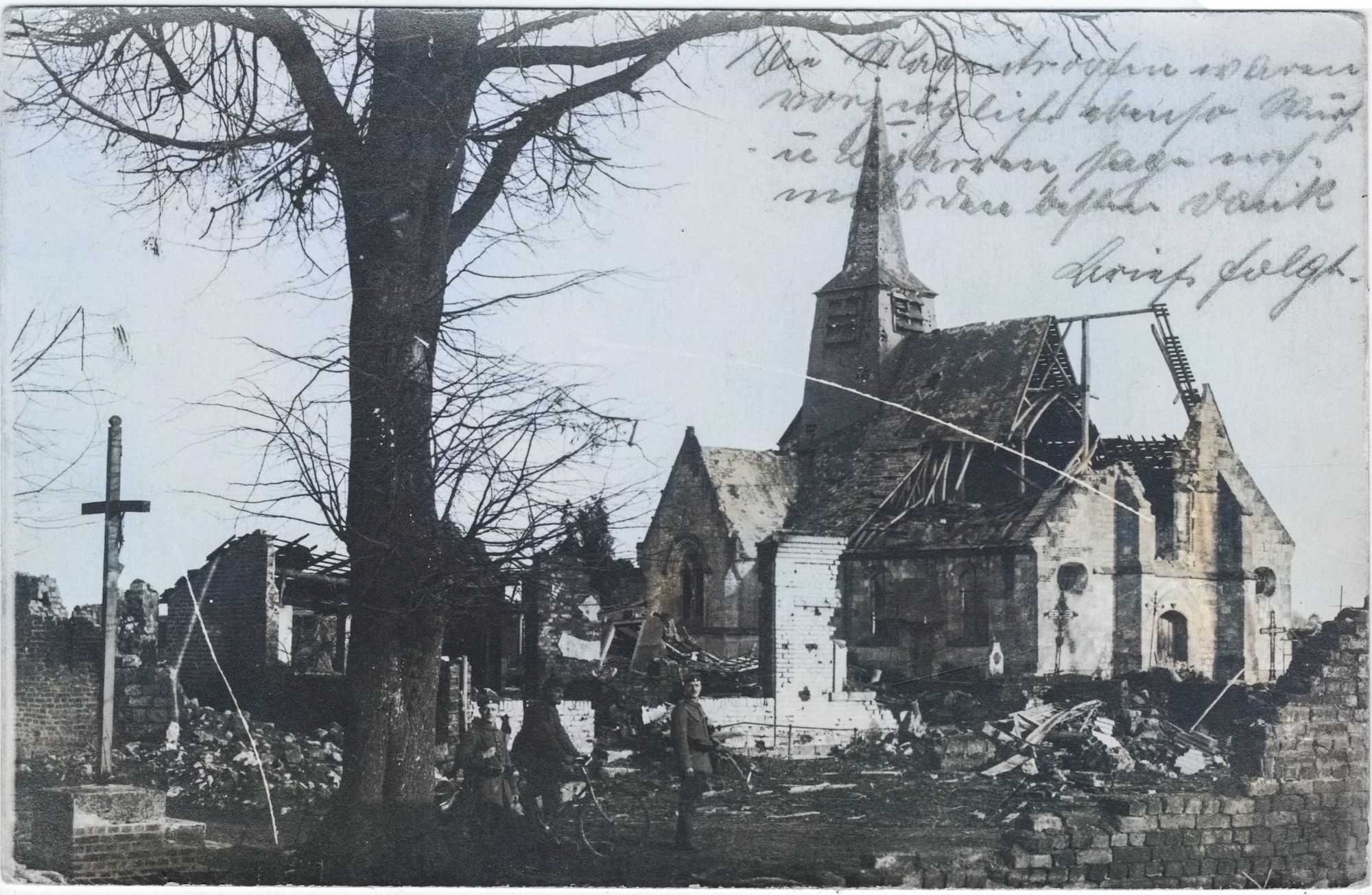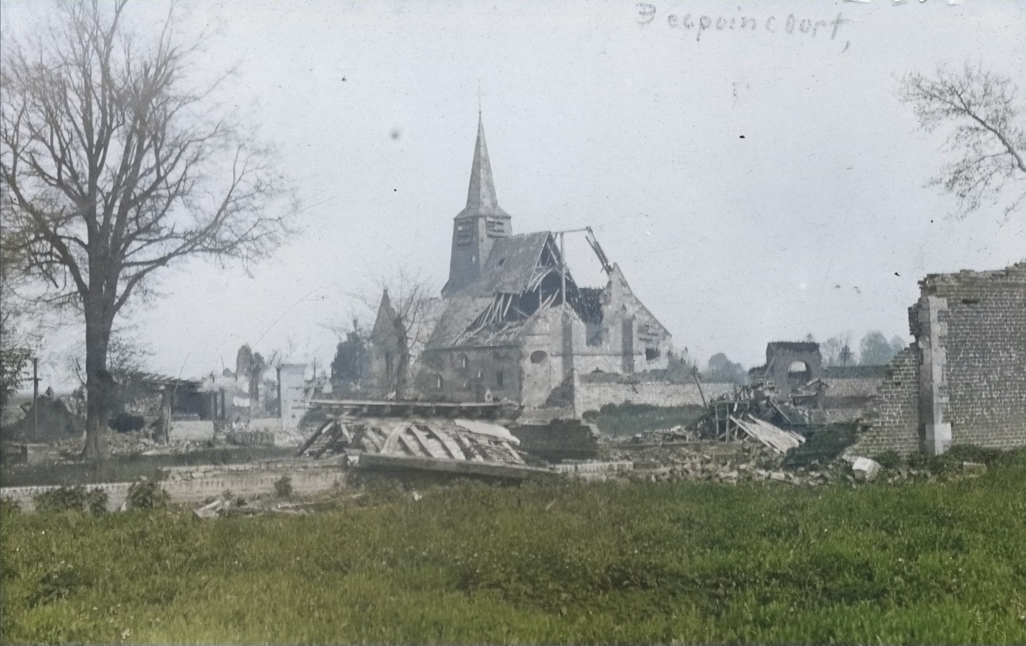 Depuis une semaine, l’armée française bombarde sans relâche pour chasser l’ennemi. Ce sera la fin de l’église du XIe siècle, mais le village est libéré, et l’armée française progresse sur le front.
