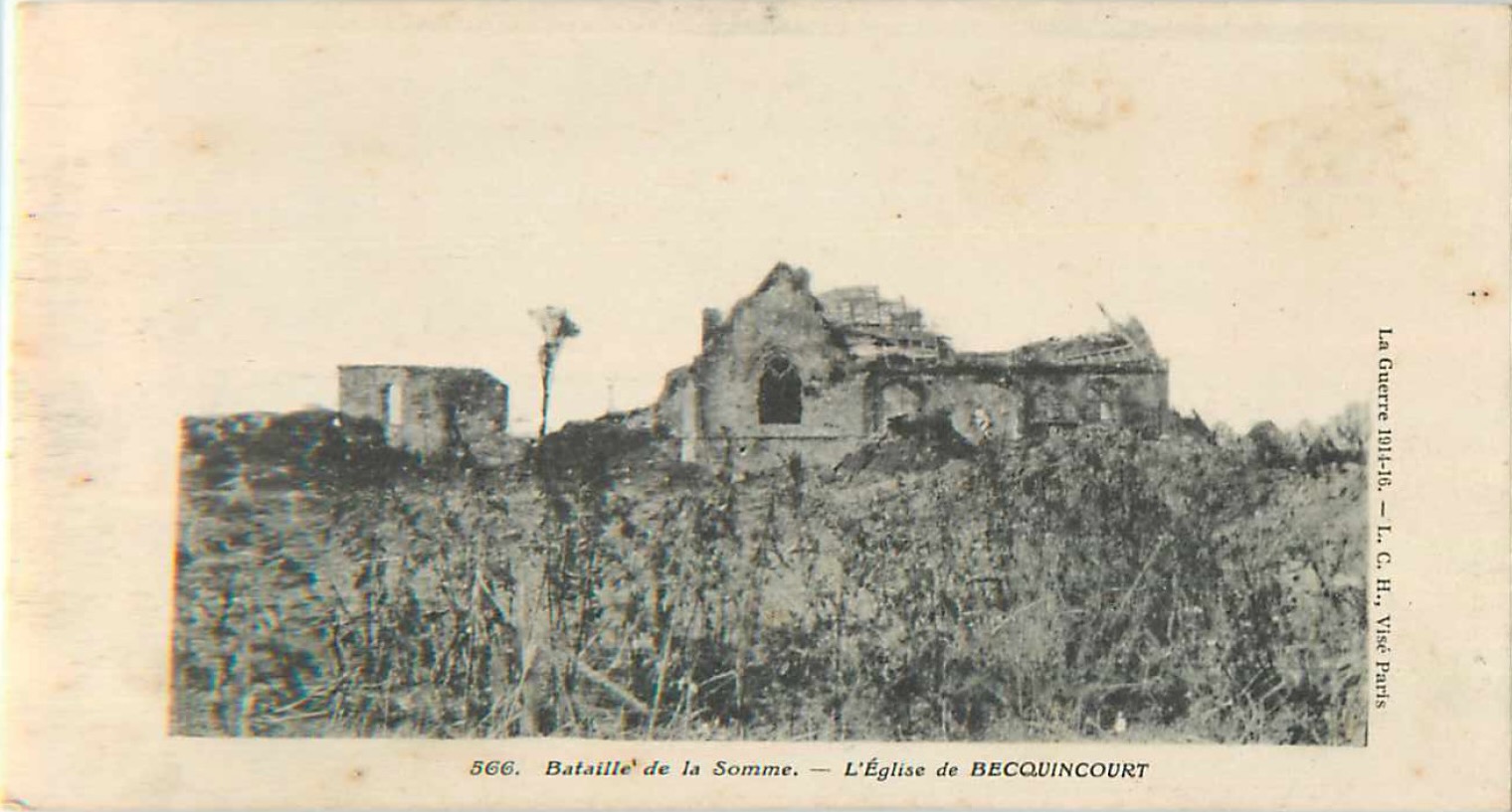La Grande Guerre commence, et l’armée allemande s’empare rapidement du village avant d’être stoppée dans son avancée. Becquincourt se retrouve ainsi en première ligne du front, aux côtés de Dompierre-en-Santerre.